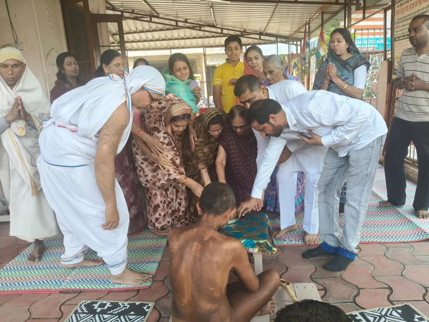 अनोखा तीर, हरदा। श्री दिगम्बर जैन समाज हरदा में नव दीक्षित मुनि श्री 108 गौरव सागर महाराज की अगवानी जोरदार रूप से की गई। जैन समाज के सदस्यों ने हरदा डबल फाटक के समीप अजमेरा दाल मिल पर मुनि श्री गौरव सागर महाराज के चरण पखारकर अपने आप को कृतार्थ किया और बाजे-गाजे के साथ स्थानीय खेड़ीपुरा स्थित प्राचीन दिगम्बर जैन मंदिर लेकर आए। समाज के कोषाध्यक्ष राजीव जैन ने बताया कि गत माह जैन तीर्थ मुक्तागिरि में आचार्य श्री 108 समय सागर जी महाराज द्वारा ब्रह्मचारी भाइयों को जैनेश्वरी दीक्षा प्रदान की गई थी। उक्त दीक्षा में ही मुनि श्री 108 गौरव सागर महाराज को दीक्षा प्रदान की गई। आचार्य श्री के आदेश के पालन में मुनि श्री गौरव सागर पद विहार करते हुए सिद्धोदय सिद्ध क्षेत्र की ओर विहार कर रहे हैं, जहां महावीर जयंती उपरांत मुनि श्री 108 संभव सागर महाराज जी के संघ में शामिल होंगे। मुनिश्री के पद विहार में नीलेश अजमेरा, राहुल रपरिया, राजकुमार कठनेरा, हर्षित जैन, गर्वित जैन, पावन रपरिया, प्रदीप अजमेरा, राजीव जैन, राहुल जैन, मनोज पुजारी सहित समाज के काफी सदस्य उपस्थित रहे।