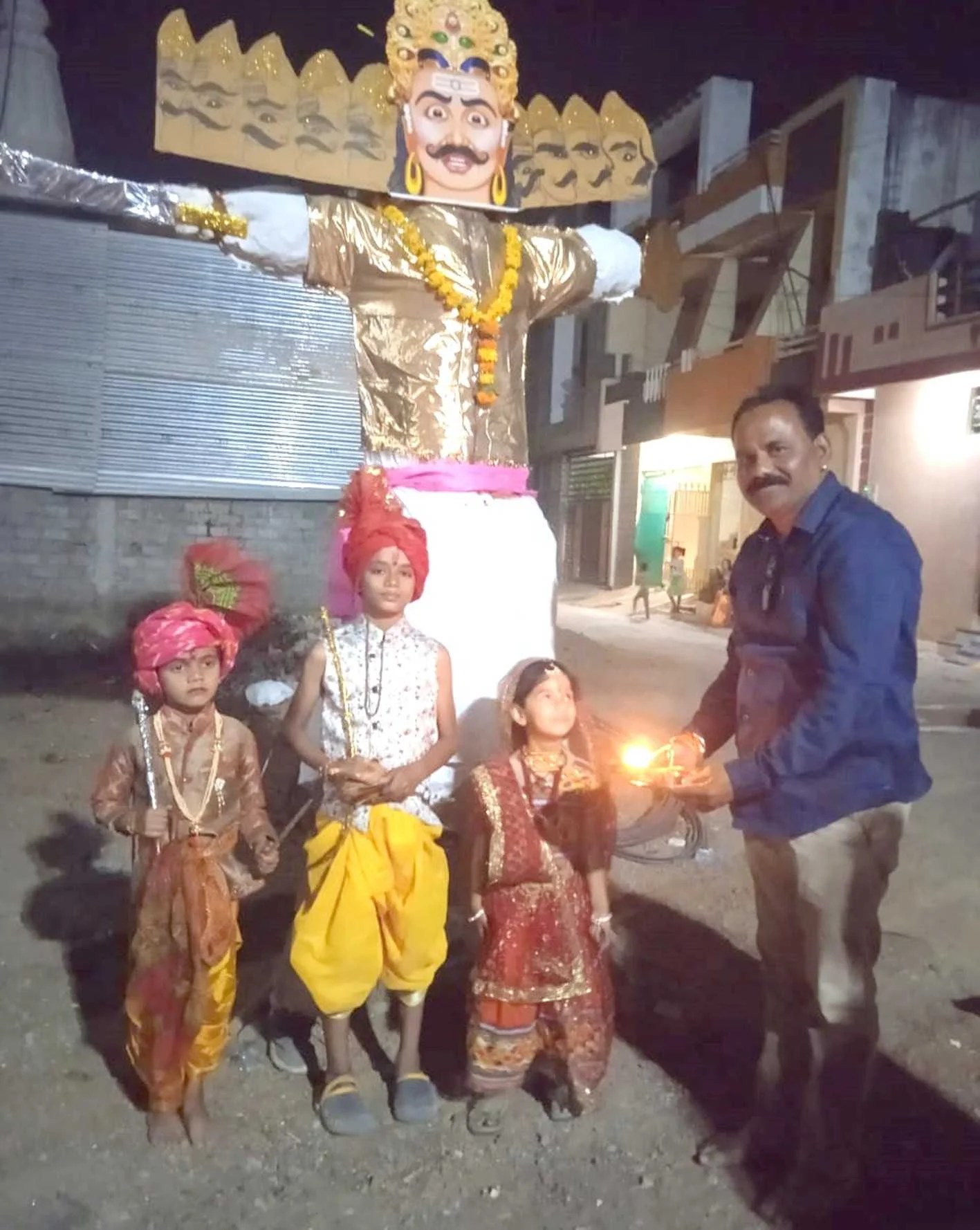 नन्हे-मुन्ने बच्चों ने किया रावण दहन
