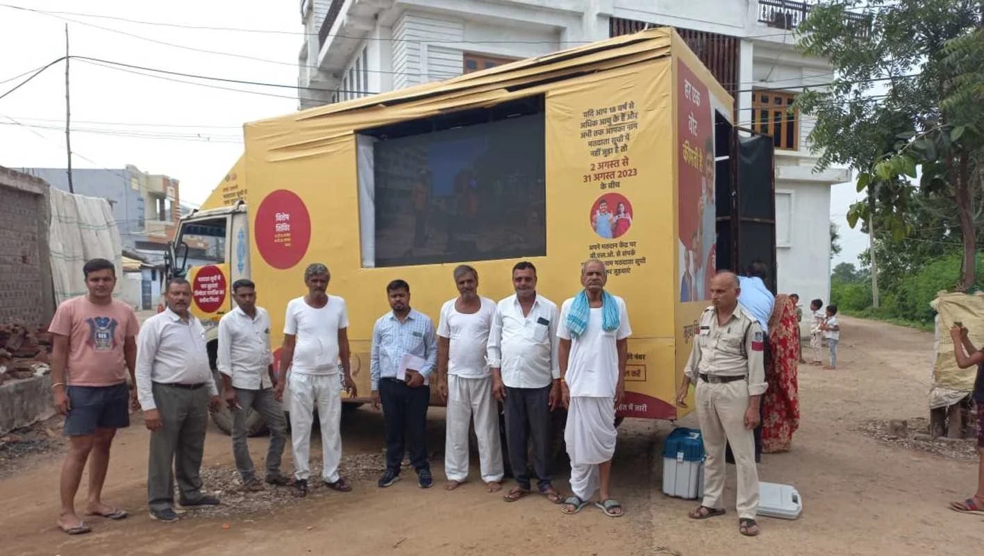 मतदाता जागरुकता रथ के माध्यम से मतदान का प्रशिक्षण ले रहे हैं ग्रामीण